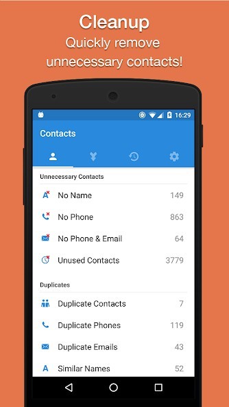 ○ Merge all duplicate contacts with one tap!