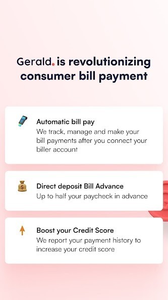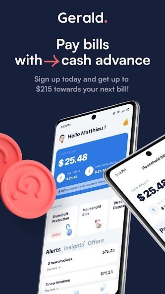 With Gerald, you can take the stress out of paying bills, get the money you need for household expenses, manage your money and much more. Best of all, there are no credit checks, no interest and no hidden fees. Our robust features include:Never deal with frustrating overdraft fees and late fees again. Sign up for an FDIC insured account* with Gerald and connect your billing accounts. If you’re short on funds, we’ll notify you right away and give you options to get up to $215** overdraft cash instantly to make sure your bills are always paid on time. Unlike big banks, we don’t charge you an overdraft fee. You get overdraft protection included with our convenient checking account***