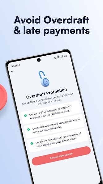 • Get overdraft advances with no interest (APR), credit checks, no origination, or hidden fees