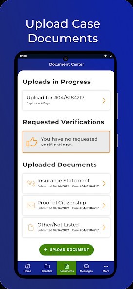 • Upload, send, and view documents related to your application or benefits.