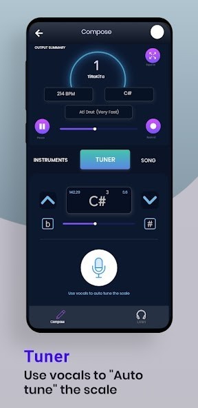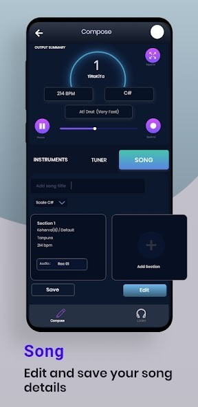 You can use the Composer screen to record and save music. It will be stored in “My recordings”. Recording the music helps you to improve and sing/practice like a pro. You can listen, learn and refine your music.